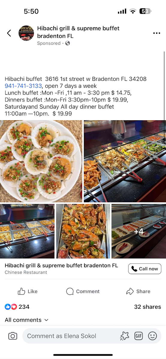 Visitors generally use the menu for casual dining, with the buffet format allowing patrons to sample a wide variety of dishes at their own pace. Takeout options are also available for sushi, hibachi, and various seafood items, accommodating those seeking convenient meal solutions.
